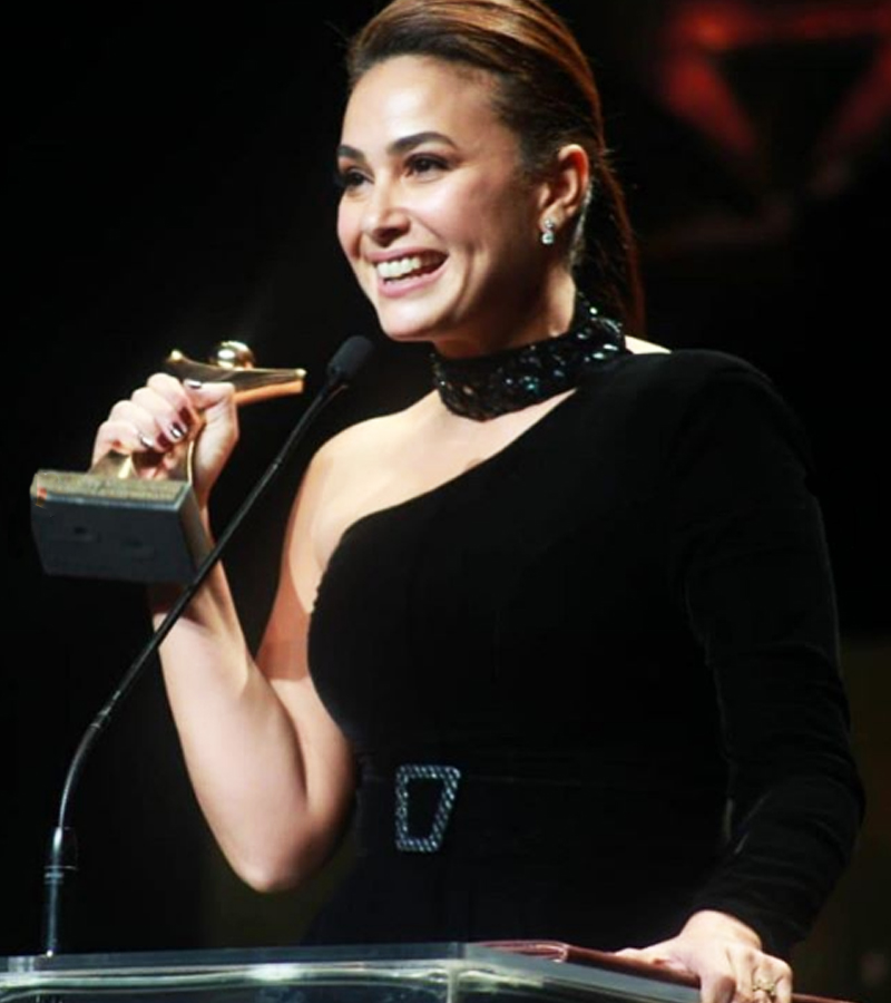 أما النجمة هند صبري فقد اختارت فستانا أسود راقي من تصميم المبدعة سهير القابسي ؛ بهرت به الحاضرين وبسحرها وجمالها الأخاذين اللذين اضافوا جمالاً خاصاً للفستان